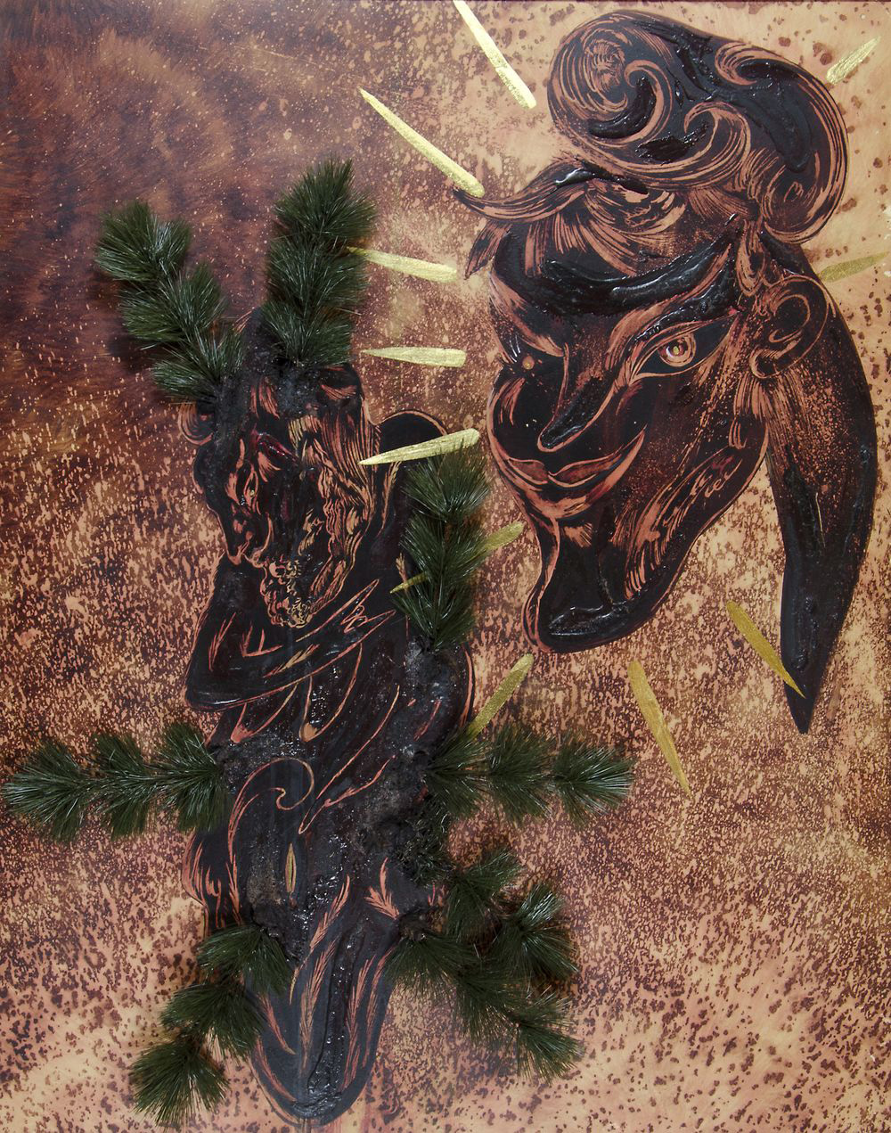 Claudio Massini 1955 "Immaginazione" cm. 107x84 - tecnica mista e applicazioni su carta Firmato b. a d. e datato 1985/1986.