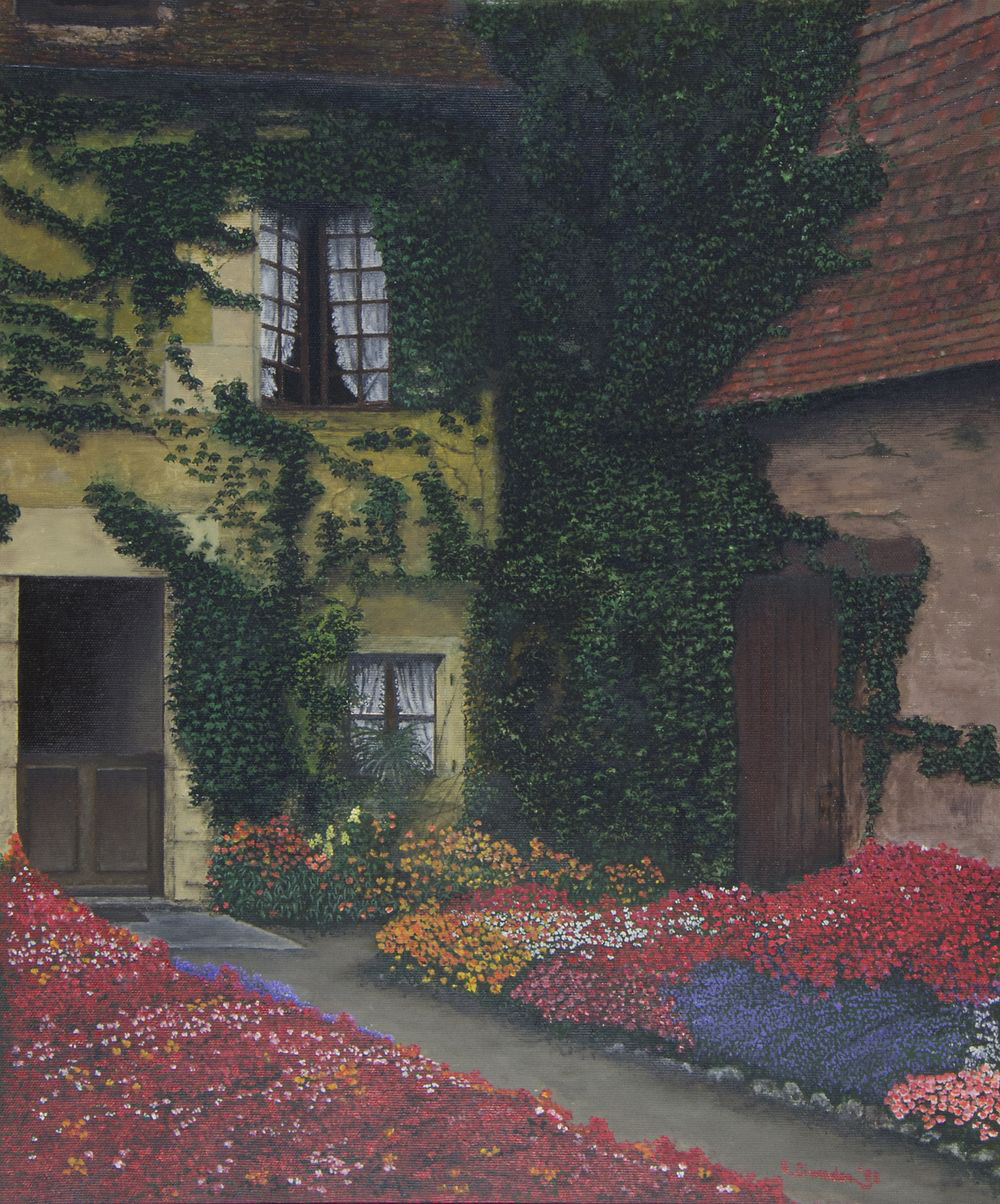 FlavioCimador Trieste 1940 "Fiori in cortile" cm. 60x50 - olio su tela Firmato b. a d. e datato '93.