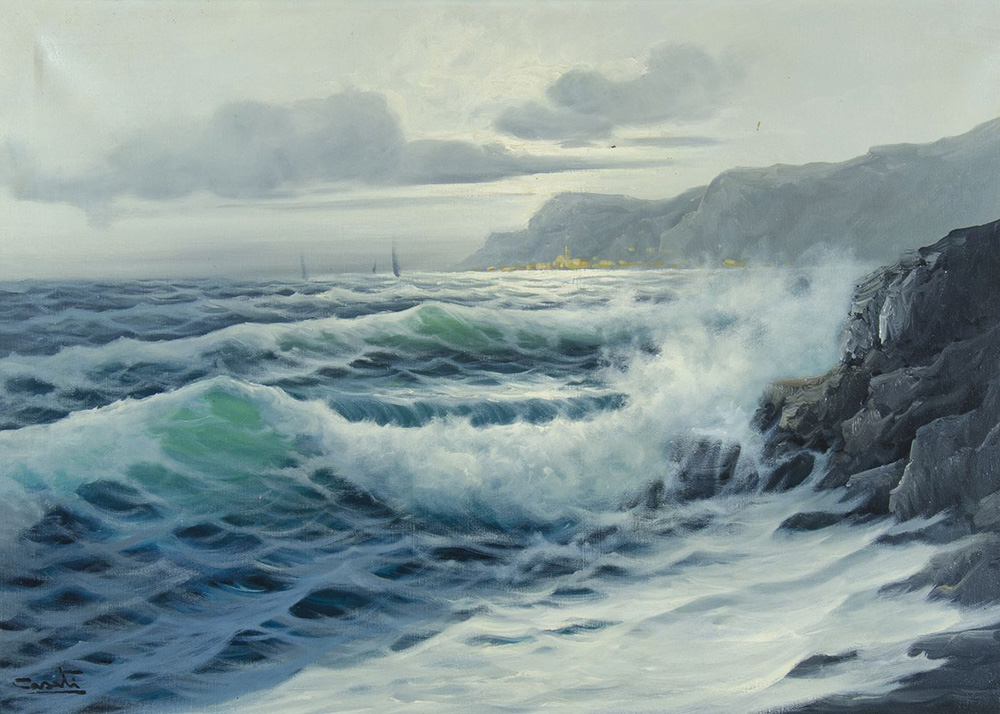 Carlo Casati 1889-1965 "Onde" cm. 50x70 - olio su tela Firmato b. a s.Il...