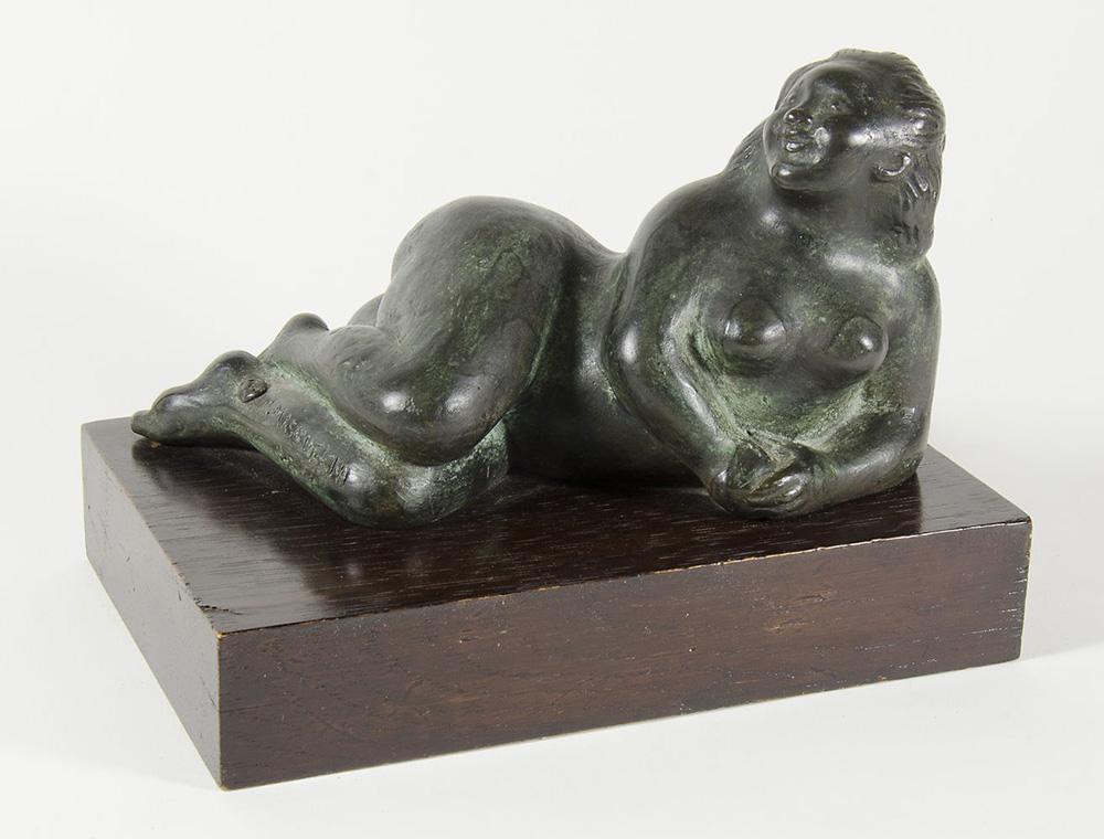 Marcello Mascherini Udine 1906-Trieste 1983 "Modella distesa" lung. cm. 25 - scultura in bronzo a patina scura, su base in legno Firma incisa e monogramma.