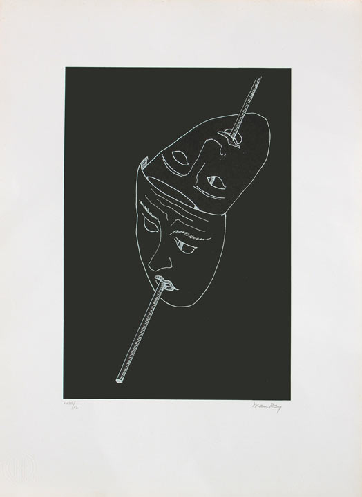 MAN RAY Les six masques voyants, 1970 litografia lithography cm 70.5×50.5 Edizione di XL esemplari Edition of XL Bibliografia | Bibliography ‘Man Ray. Opera grafica’, Vol. I, Studio Marconi, Milano, 1973, p. 138, n° 72 Edizione Studio Marconi, Milano. Firma ‘Man Ray’ (in basso a destra) Edition Studio Marconi, Milan. Signed ‘Man Ray’ (lower right)