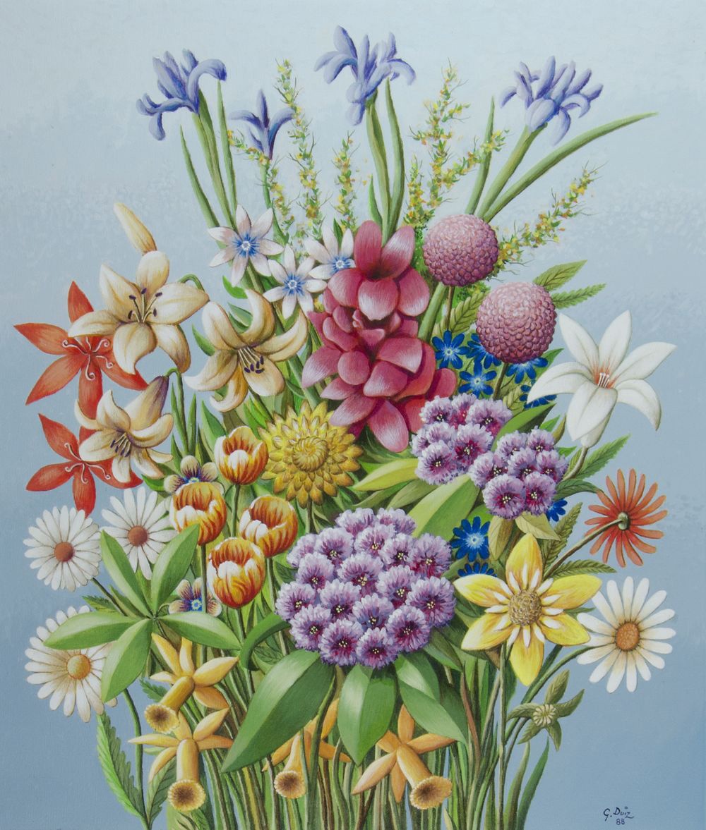 Giovanni Duiz Trieste 1923-2013 "Fiori" cm. 70x60 - olio su tela Firmato b. a d. Al retro titolo e indirizzo dell'Artista.