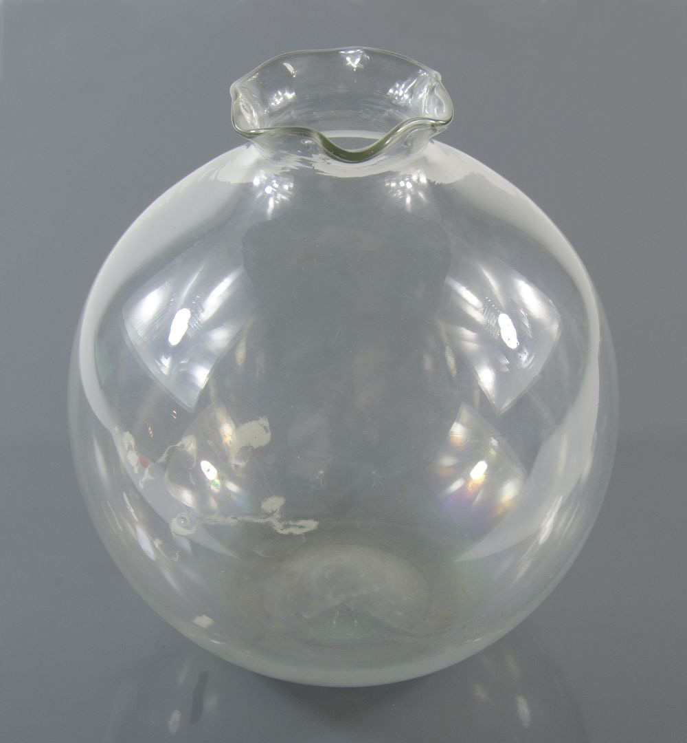 Venini: vaso a boccia in vetro trasparente con collo ondulato. Firmato Venini...