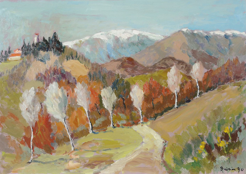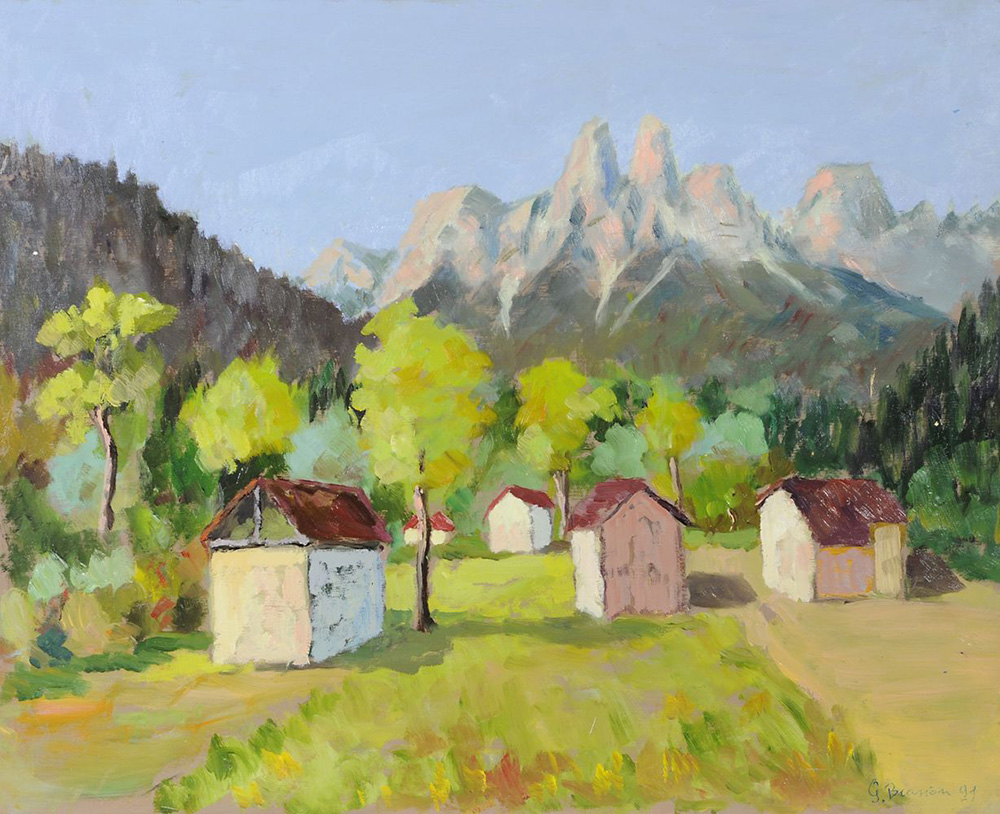 Biasion Lotto di 7 opere ad olio raffiguranti paesaggi, misure diverse.