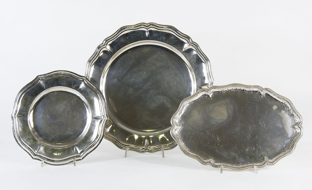 Lotto di 3 piatti in argento. Gr. Tot 1900.