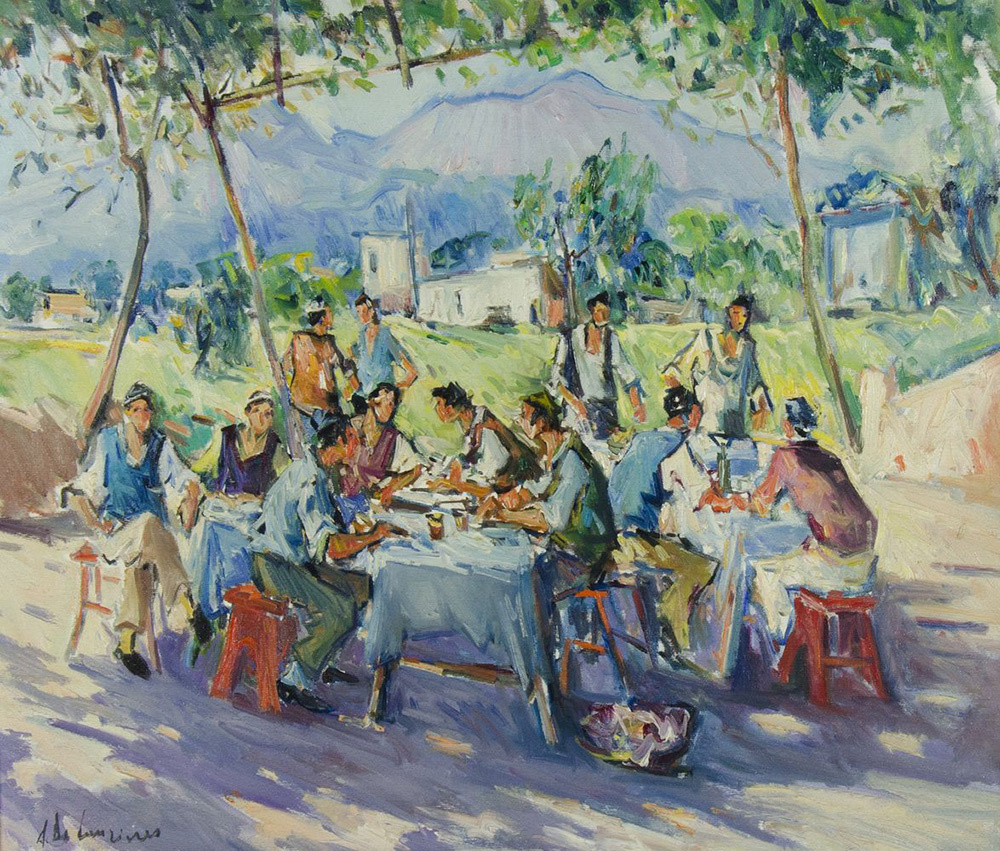 Armando De Lauzieres 1943 "Buon pranzo" cm. 50x60 - olio su tela Firmato b. a s.
