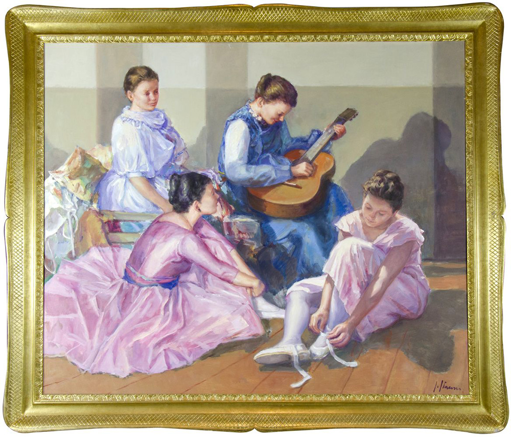 Salvatore Ciaurro 1942 "Scuola di danza della signora Manon" cm. 100x120 - olio su compensato Firmato b. a d.