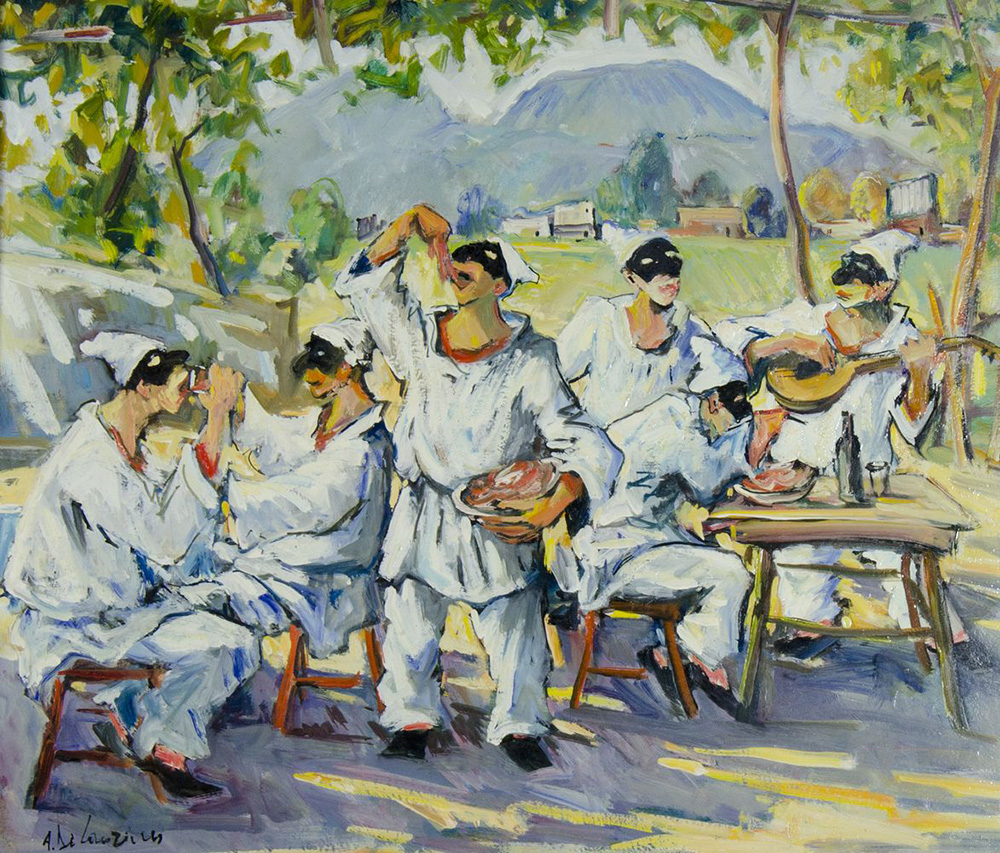 Armando De Lauzieres 1943 "Trattoria tra gli alberi" cm. 50x60 - olio su...