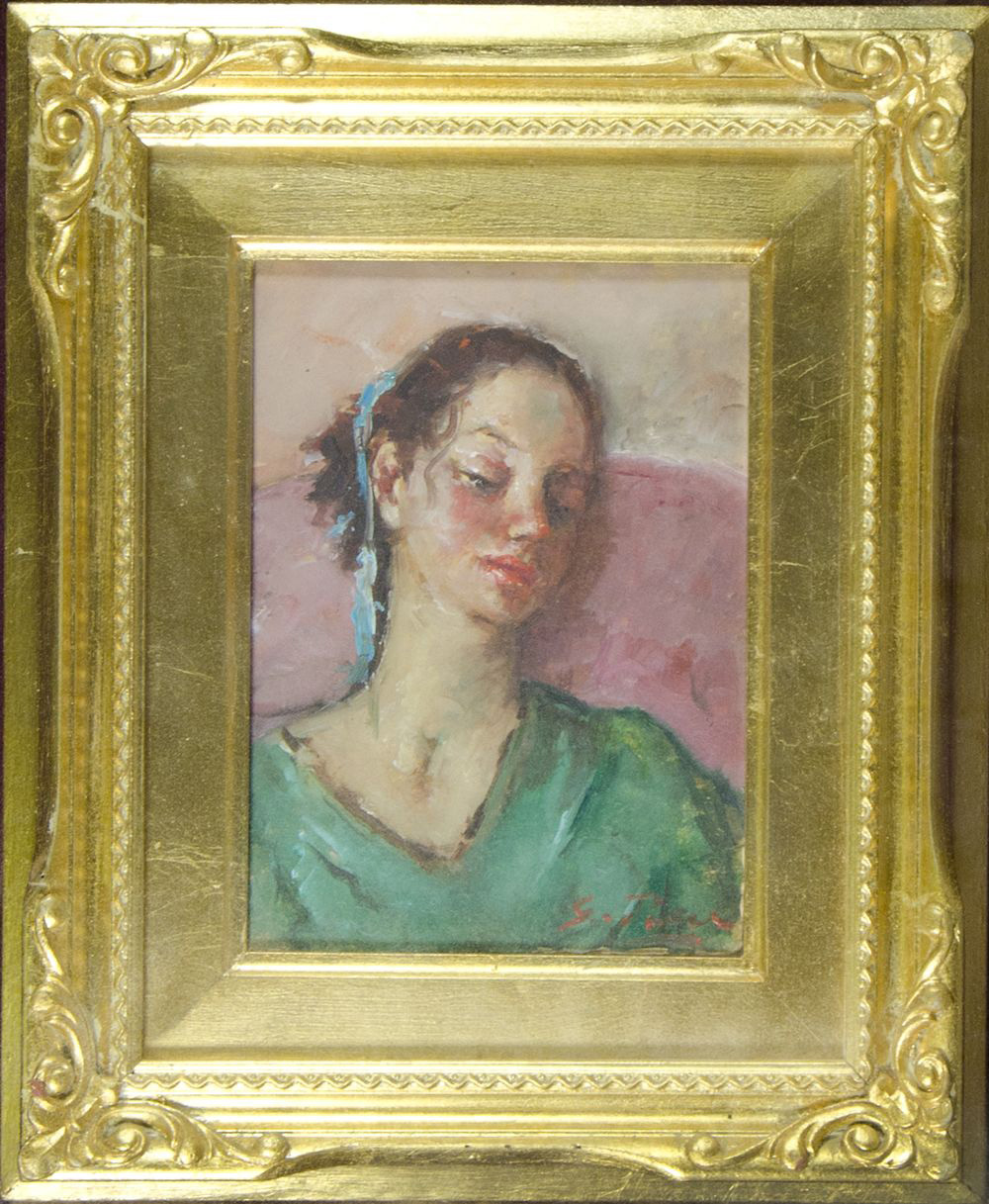 Lotto 513 | Pittore del '900 "Ragazza in posa" cm. 16x12 - olio su cartone Firmato b. a d.