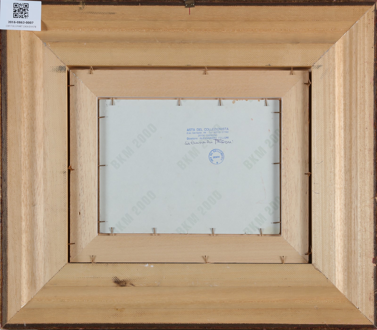 GONZAGA GIOVAN FRANCESCO (1921 - 2007) Riding on the beach. Mixed media on card. Cm 24,00 x 18,50. Signature lower right. Cremona Collector Auction stamp at the back. Cornice presente