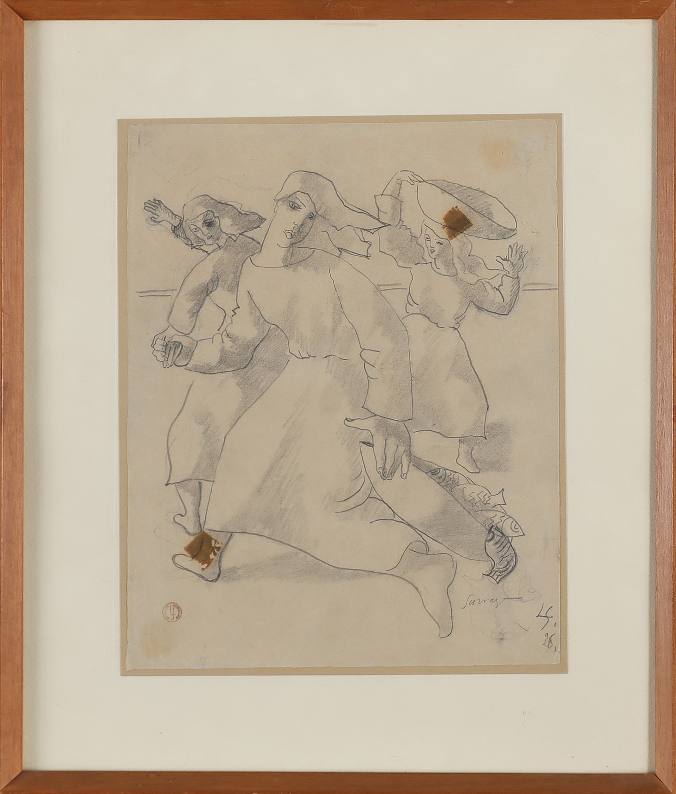 SURVAGE LEOPOLD (1879 - 1968) Pechenses. 1926. Pencil on paper. Cm 22,00 x 28,00. Signature lower right. Descriptive label by Dantesca saletta d'arte, Turin, at the back.. Cornice presente