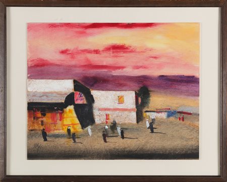 MAGAZZINI SALVATORE (n. 1955) Marrakech. . Olio su tavola. Cm 40,00 x 30,00. Firma in basso a sinistra. Autentica dell'artista su fotografia.