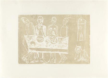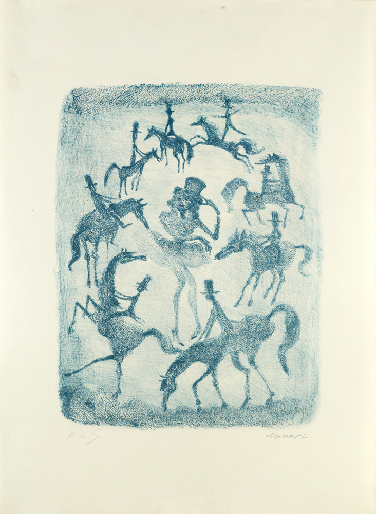 Mino Maccari SENZA TITOLO - Litografia, cm 66,3x48, Firma "Maccari", Tiratura...