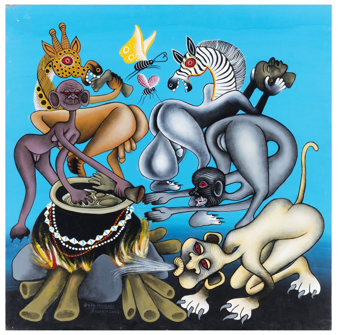 BUSH MIKIDADI Tanzania 1959 Senza Titolo 2006 Olio su masonite cm 80 x 80...