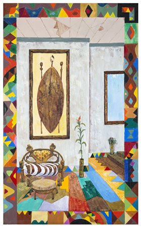 JOSEPH LYOMBO Kyila 1959 Senza Titolo 2005 Olio su tela cm 175 x 110 Firma in...