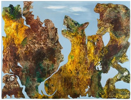 PAMELA PRENDINI Sud Africa 1950 Composizione figure lupo e civetta 1991 Olio...