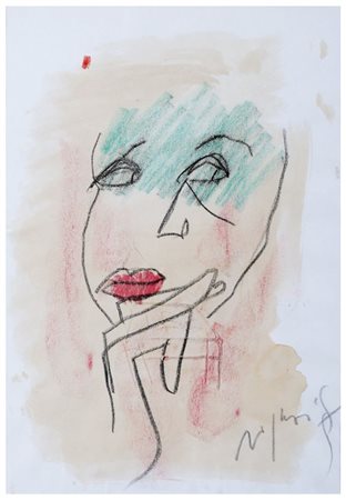 FRANCO ROGNONI Milano 1913 - 1999 Figura donna Acquarello e pastello su carta...