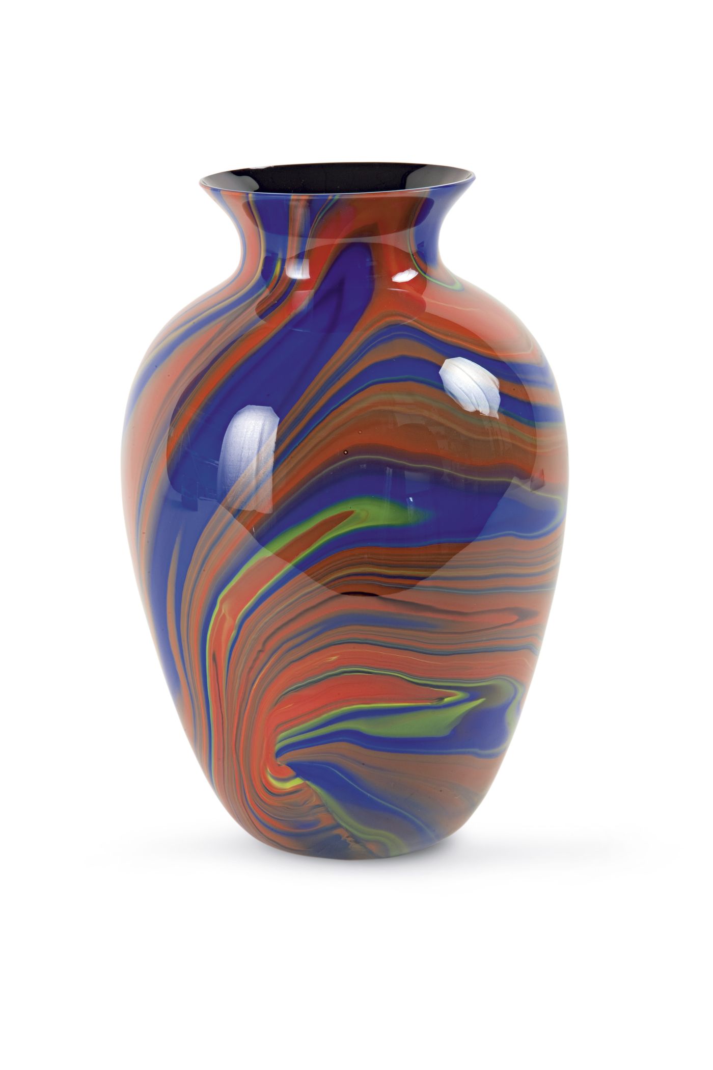 MISSONI OTTAVIO – Mercurio, Vaso in vetro marmorizzato. Superficie interna incamiciata nera. Firmato ad acido Missoni. Prod. Artevetro Murano 1980 circa. H cm 33. Bibl.: R. Barovier Mentasti, S. Pezzoli, C. Tonini (a cura di) "Artisti e Designer del vetro 1960 - 2010 la Collezione Bellini Pezzoli", Marsilio 2010, pag. 84, fig. 68