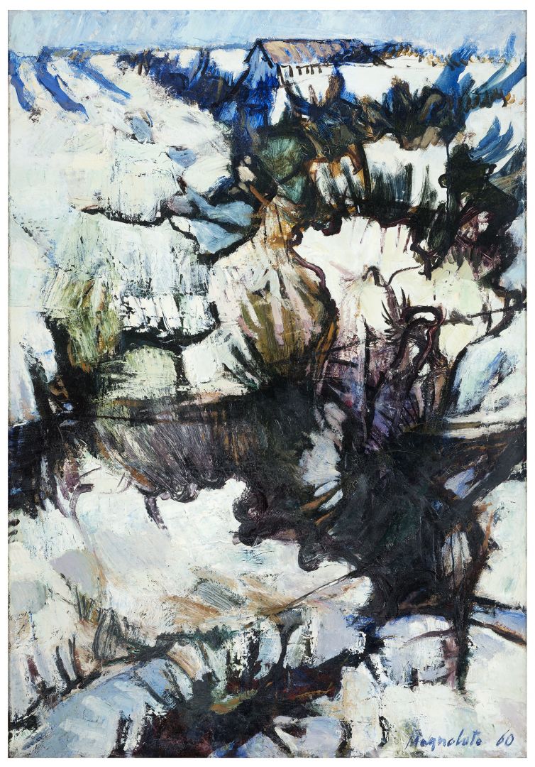 CESCO MAGNOLATO Noventa di Piave 1926 Paesaggio innevato 1960 Olio su tela cm...