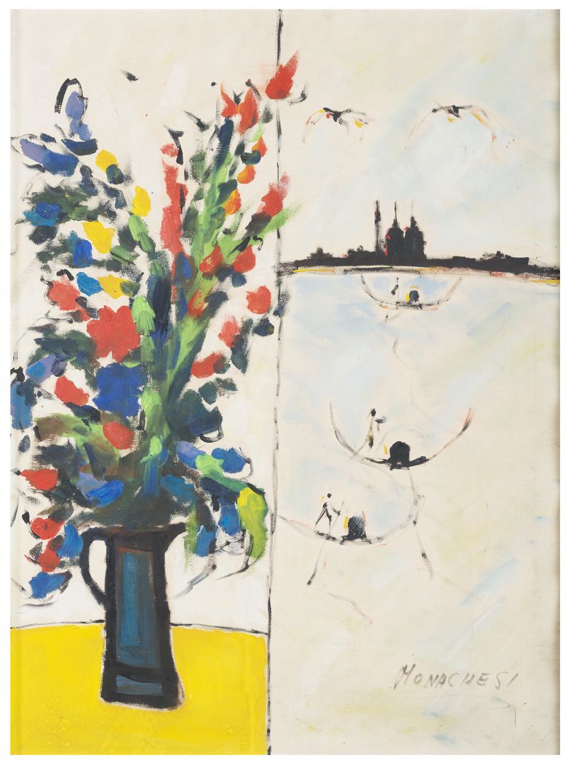 SANTE MONACHESI Macerata 1910 - Roma 1991 Natura morta con Venezia Olio su...