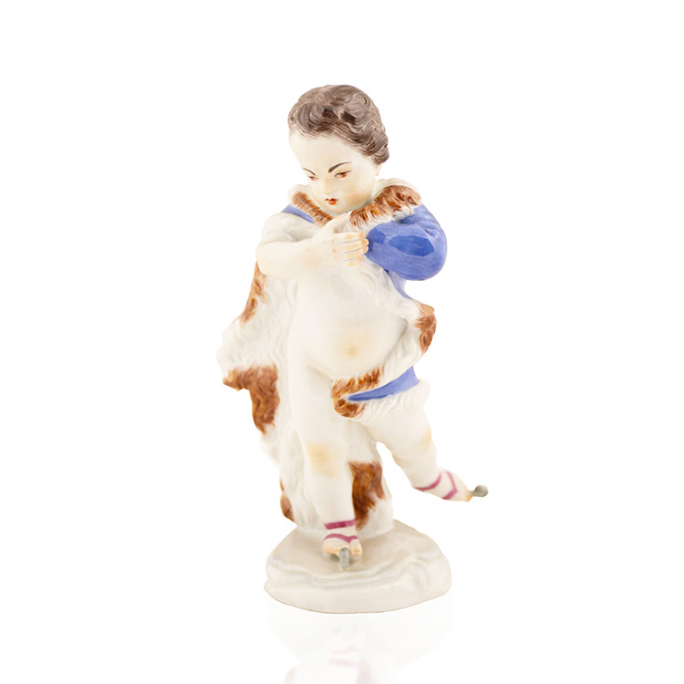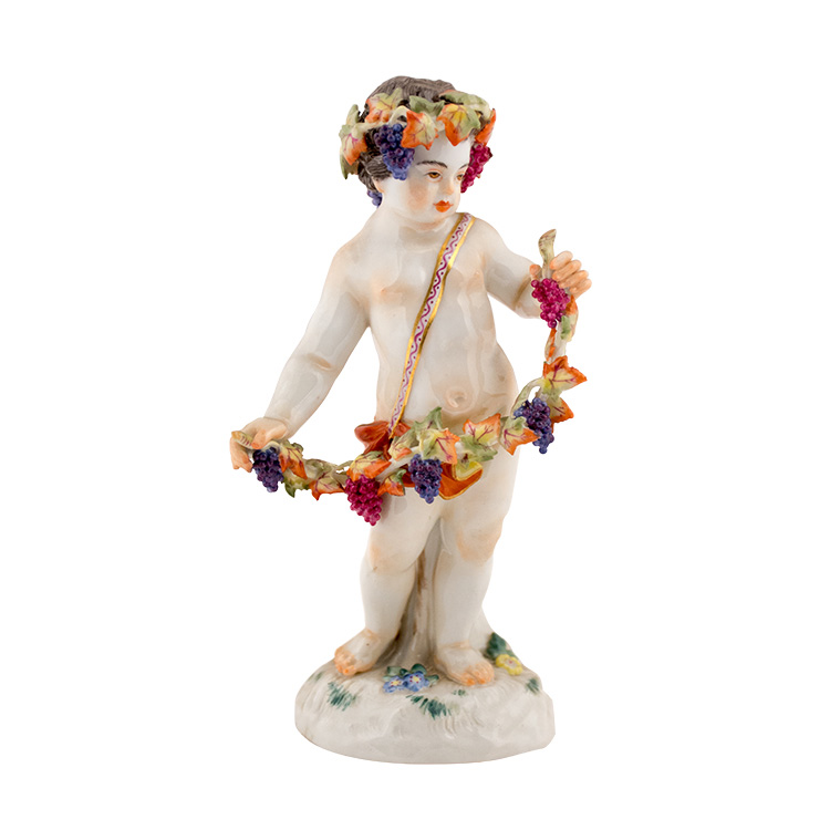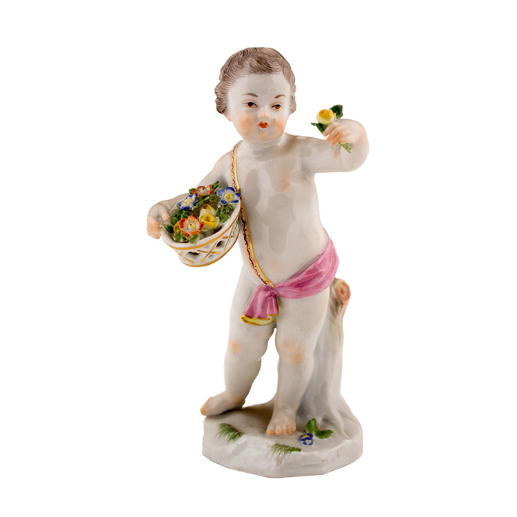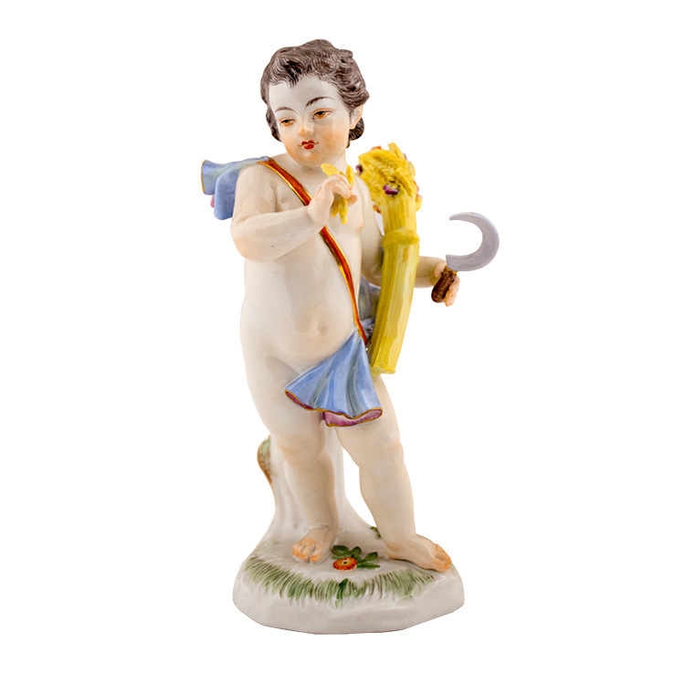 Quattro statuine in porcellana raffiguranti le Quattro Stagioni. A "Primavera"; B "Estate"; C "Autunno"; D "Inverno" XIX-XX sec. Statuine in porcellana Meissen, 14 x 5 x 5 cm.
