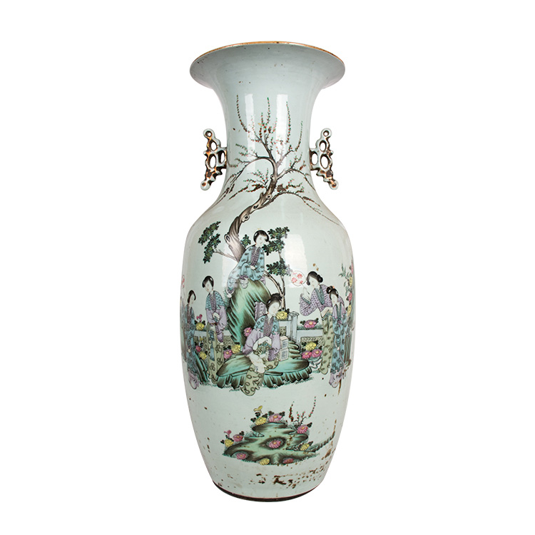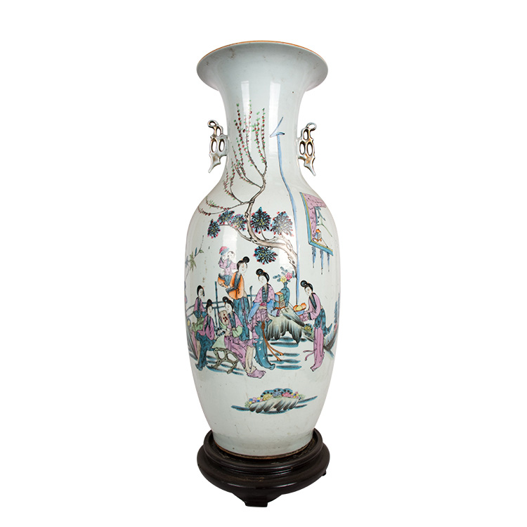 Coppia di vasi: A Vaso in stile orientale; B Vaso in stile orientale. XX sec. A: Vaso in porcellana con manici; h: 59 cm (con base 65 cm); B: Vaso in porcellana con manici; h: 57 cm; assenza di base