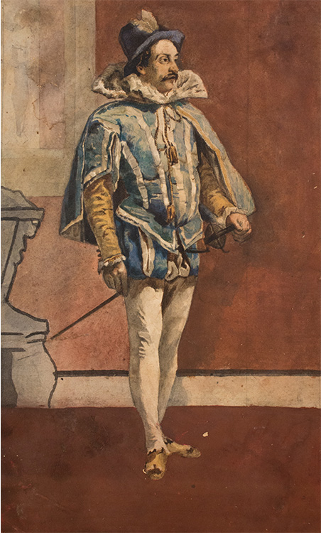 Scuola italiana Acquerello raffigurante "Figura di armigero stante" XIX sec....