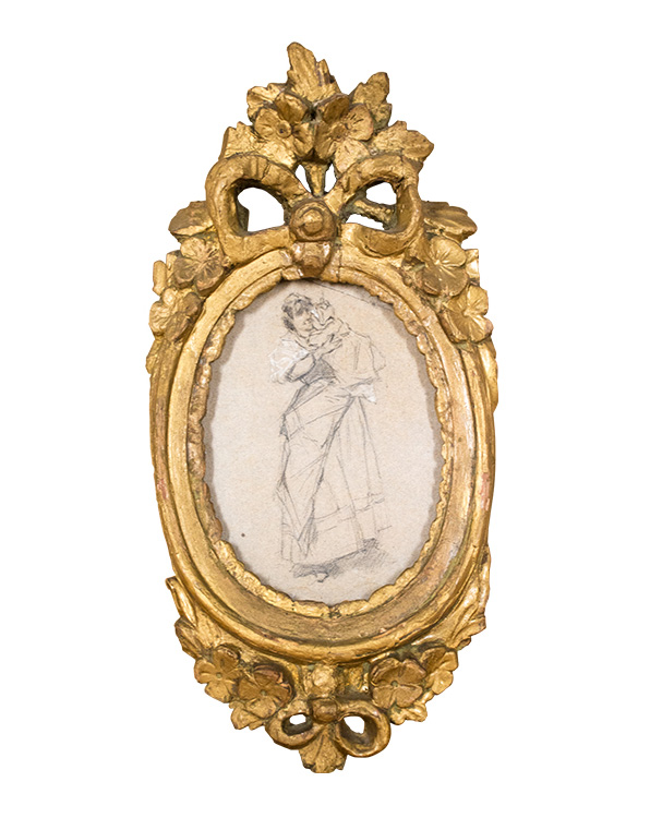 Anonimo Coppia di disegni: A "Figura di popolana con bambino in braccio"; B "Figura di popolana" XX sec. A: matita su carta con rialzi di biacca, 15 x 10,5 cm; B: matita su carta, rialzi di biacca, 14,5 x 11 cm.