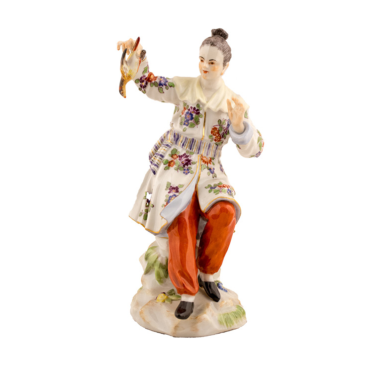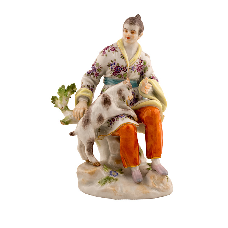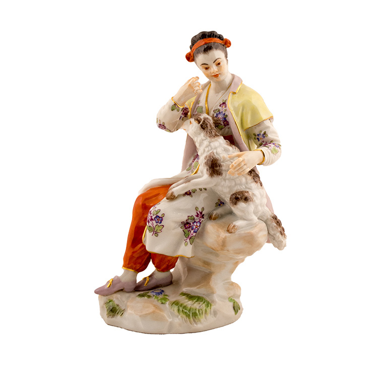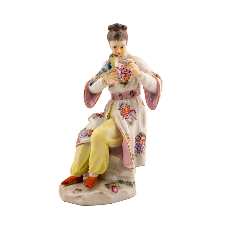 Quattro statuine in porcellana. A Figura femminile seduta con capretta; B Figura femminile seduta con capretta; C Figura femminile seduta con uccello nella mano destra; D Figura femminile seduta che nutre uccello. XIX sec. Quattro statuine in porcellana Meissen. A: 12,5 x 8 x 7 cm; B: 12,5 x 9 x 7 cm; C: 13,5 x 7 x 7 cm; D: 13,5 x 6 x 7 cm.