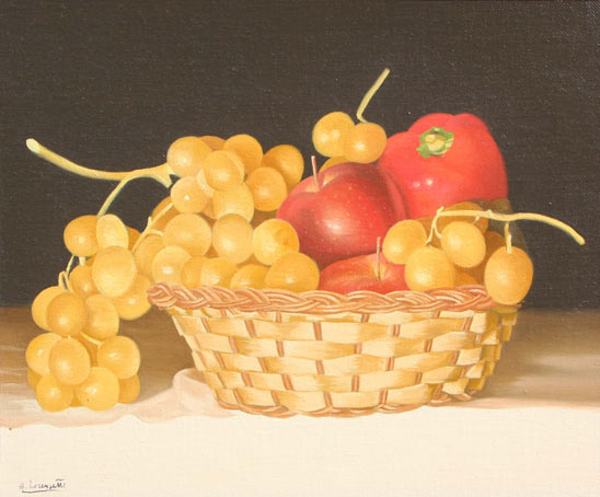 Adolfo LORENZETTI Lucca 1952 Cestino olio su tela riportata su tavola oil on canvas laid down on board cm 25.5×30.5 Firma ‘A. Lorenzetti’ (in basso a sinistra) Timbro dell’artista, titolo, tecnica, firma, misure ‘Cestino, olio su tela rip. su tavola, Adolfo Lorenzetti, 30.5×25.5’ (al retro) Signed ‘A. Lorenzetti’ (lower left) Stamp of the artist, titled, tecnique, signed, sized ‘Cestino, olio su tela rip. su tavola, Adolfo Lorenzetti, 30.5×25.5’ (on the reverse)