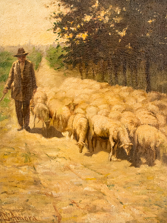M. D'Ambra Dipinto raffigurante "Pastore con gregge al pascolo" fine...