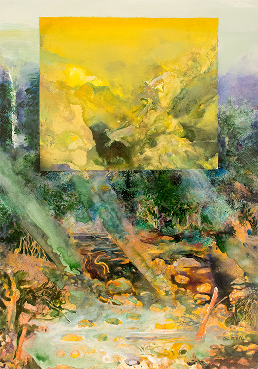 R. Carroll Dipinto raffigurante "la valle del Sangro" II metà XX sec. Acrilico su cartone, 68,5 x 48,5 cm; firmato in basso a destra; presenti annotazioni sul retro: "Acrilico" "48 x 68" "La Valle del Sangro" "Robert Carroll" "Parco d'Abruzzo" "Italy". Diventa amico di Willem De Kooning, uno dei maggiori pittori americani dell’espressionismo astratto, che lo introduce nell’ambiente culturale e artistico italiano quando, all’età di venticinque anni, nel 1959 Carroll lascia l’America per l’Italia. Stabilitosi a Roma, nel 1960 sposa la scrittrice Simona Mastrocinque. Alla fine degli anni sessanta alla Galleria Trentadue di Alfredo Paglione a Milano (dove tornerà a esporre negli anni 1970, 1973, 1974, 1978) propone un importante ciclo pittorico intitolato «Sisifo», successivamente esposto negli Stati Uniti. Seguono oltre duecentocinquanta esposizioni nazionali e internazionali.