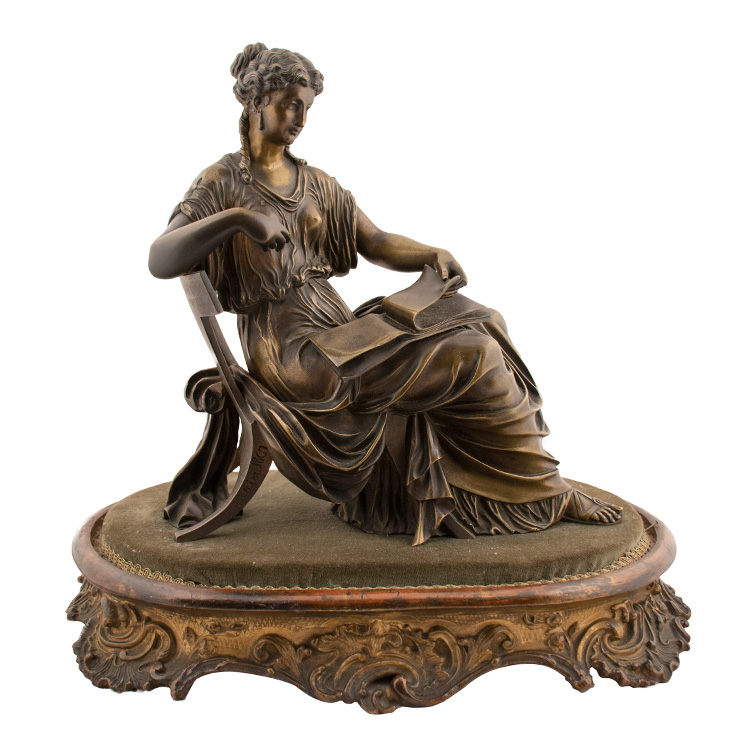 Lotto 139 | Scuola francese "Musa Clio intenta a leggere" XIX sec. Bronzo; 38 x 40 x 22 cm.
