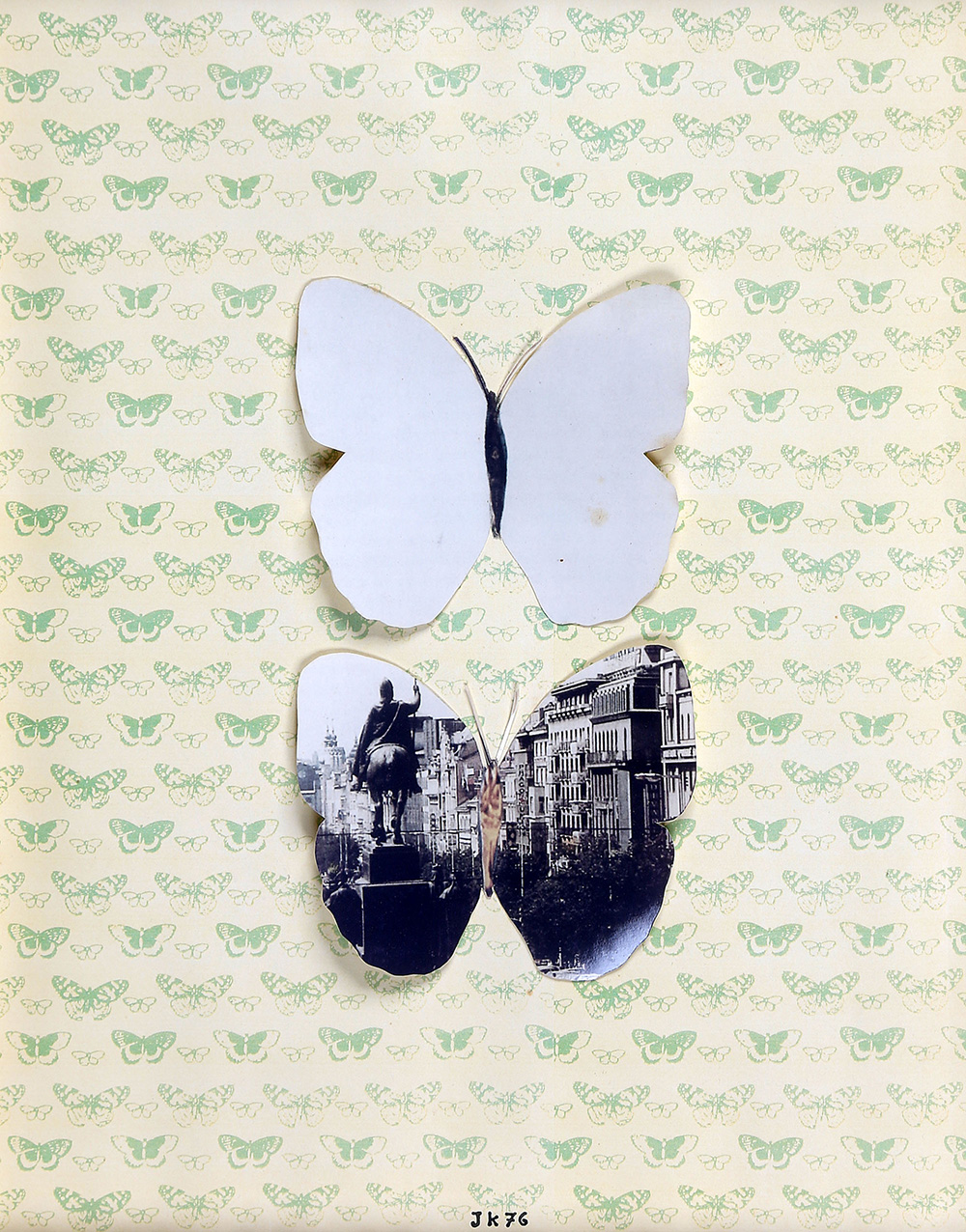 Collage di fotografie ritagliate su carta, cm. 33 x 26
