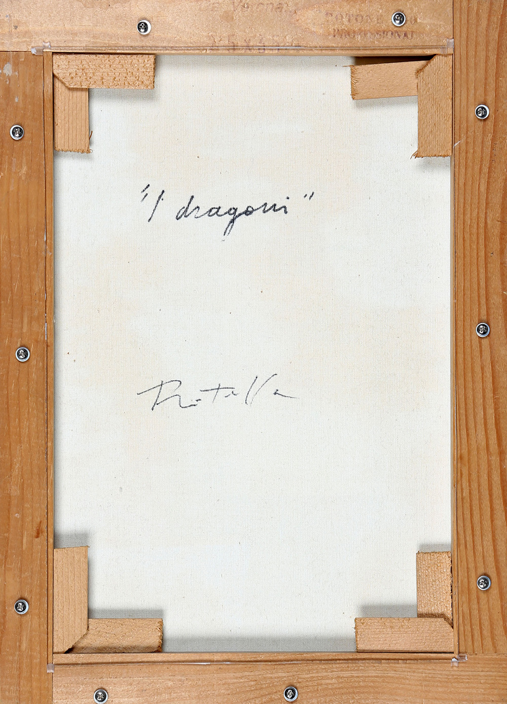 MIMMO ROTELLA 1928 - 2006 I dragoni, 1995 Collage su tela, cm. 35 x 25...