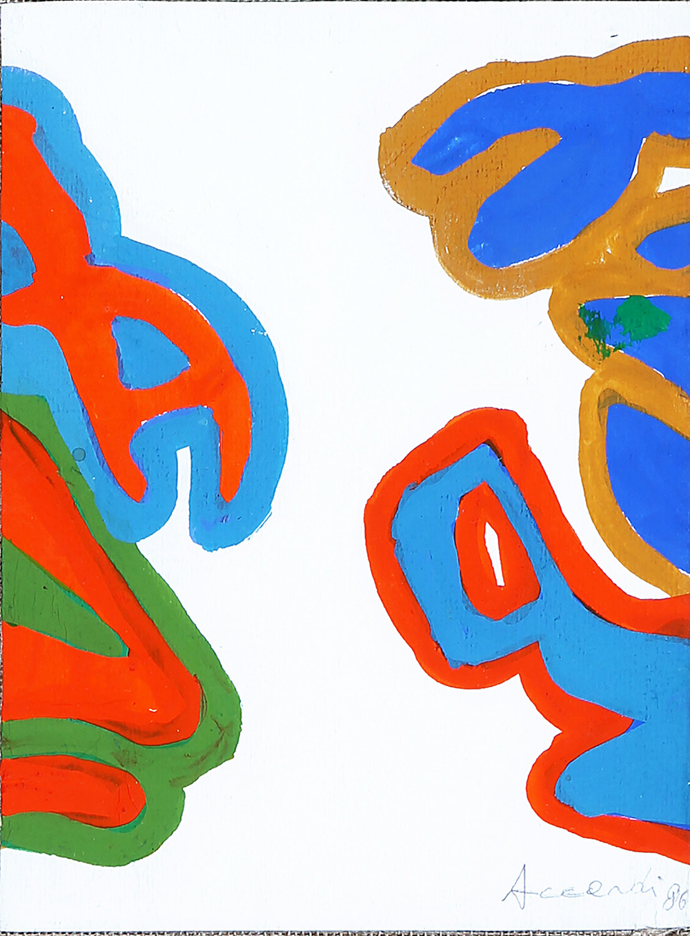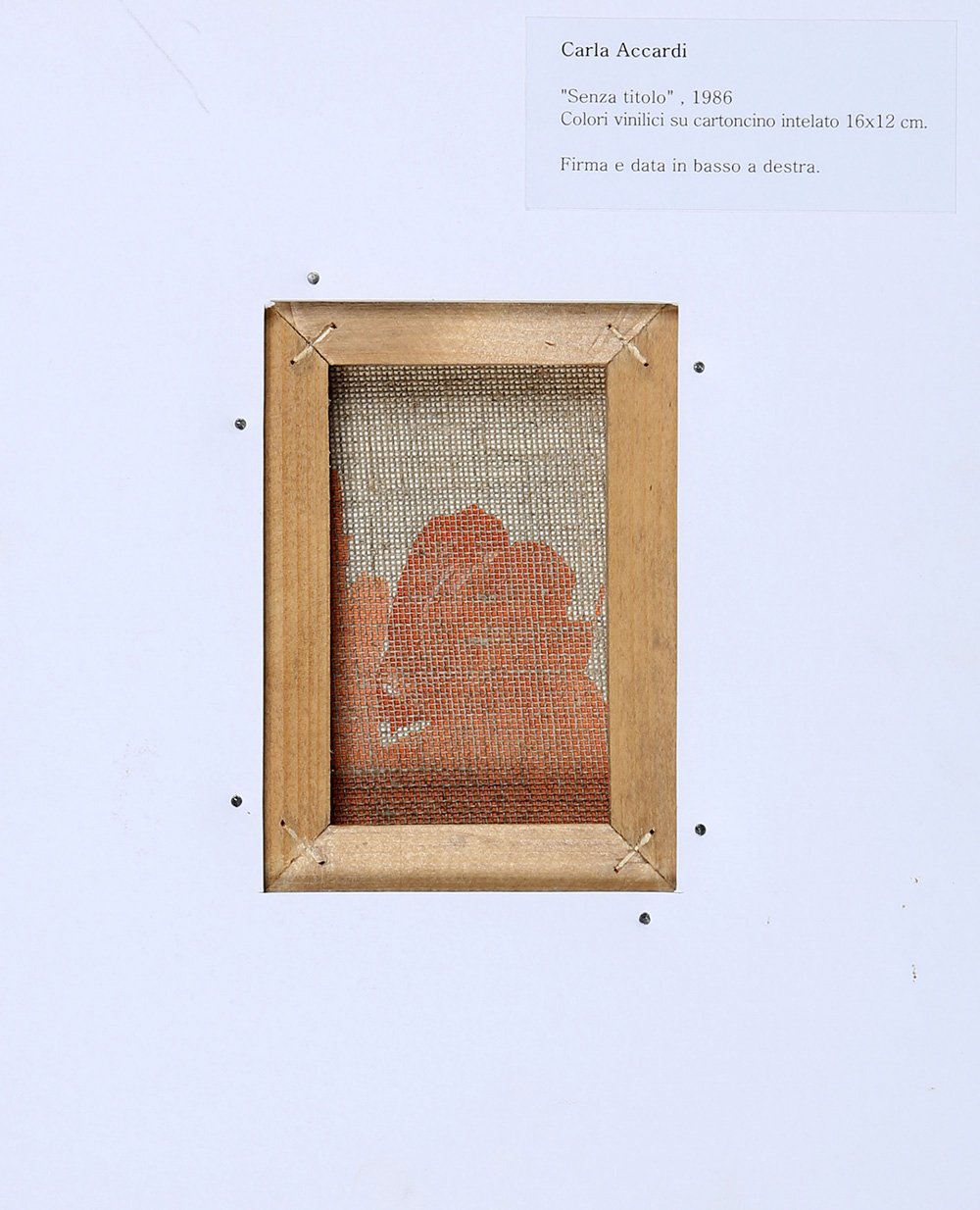 CARLA ACCARDI 1924 - 2014 Senza titolo, 1986 Colori vinilici su cartoncino su tela, cm. 16 x 12 Firmato e datato in basso a destra Certificato di autenticità dello Studio Accardi su fotografia Prov. Collezione Privata