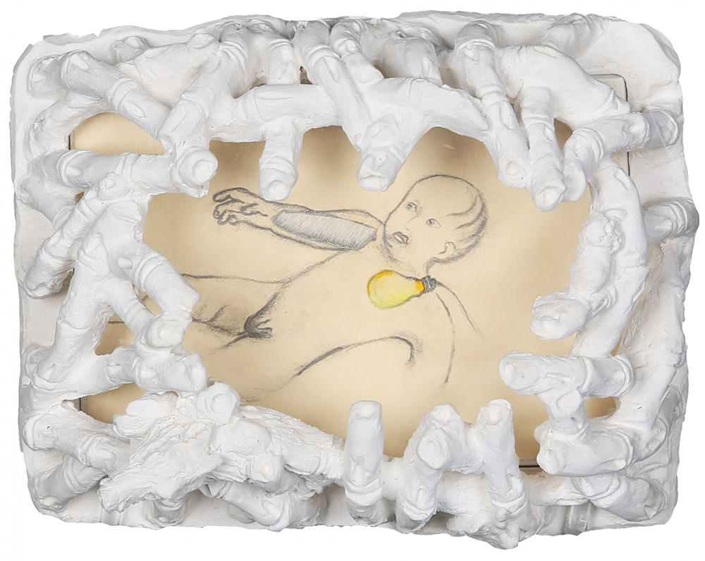 ENZO CUCCHI 1949 Lampo, 2004 Matita e pelo animale su carta, gesso, cm. 15 x 20 x 8 Firmato e datato sul retro Certificato di autenticità di Rizzerò Arte su fotografia firmata dall’artista Prov. Collezione Privata