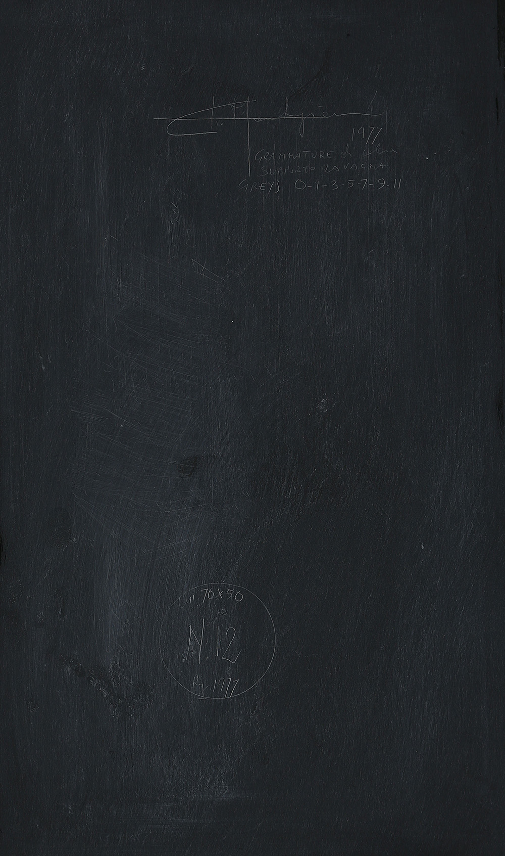 ELIO MARCHEGIANI 1929 Grammature di colore, 1977 Grammatura di colore su lavagna, cm. 70 x 50 Firmato, datato e titolato sul retro Autentica dell’artista su fotografia Prov. Collezione Privata