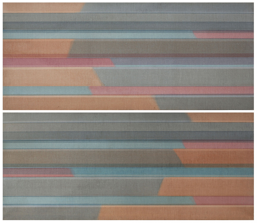 VITTORIO MATINO 1943 Mirador, 1974 Dittico, acrilico su tela, cm. 84 x 400, (cm. 84 x 200 cad.) Firmato e datato sul retro Autentica dell’artista su fotografia Prov. Collezione Privata