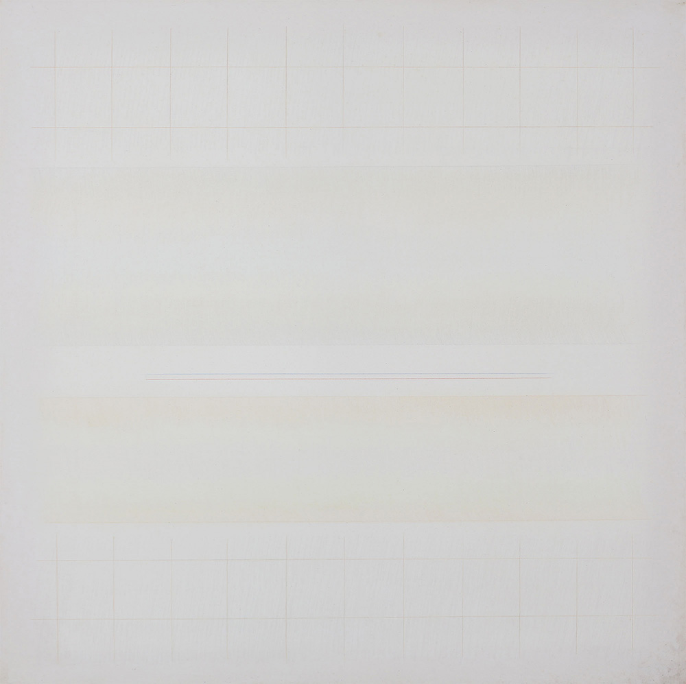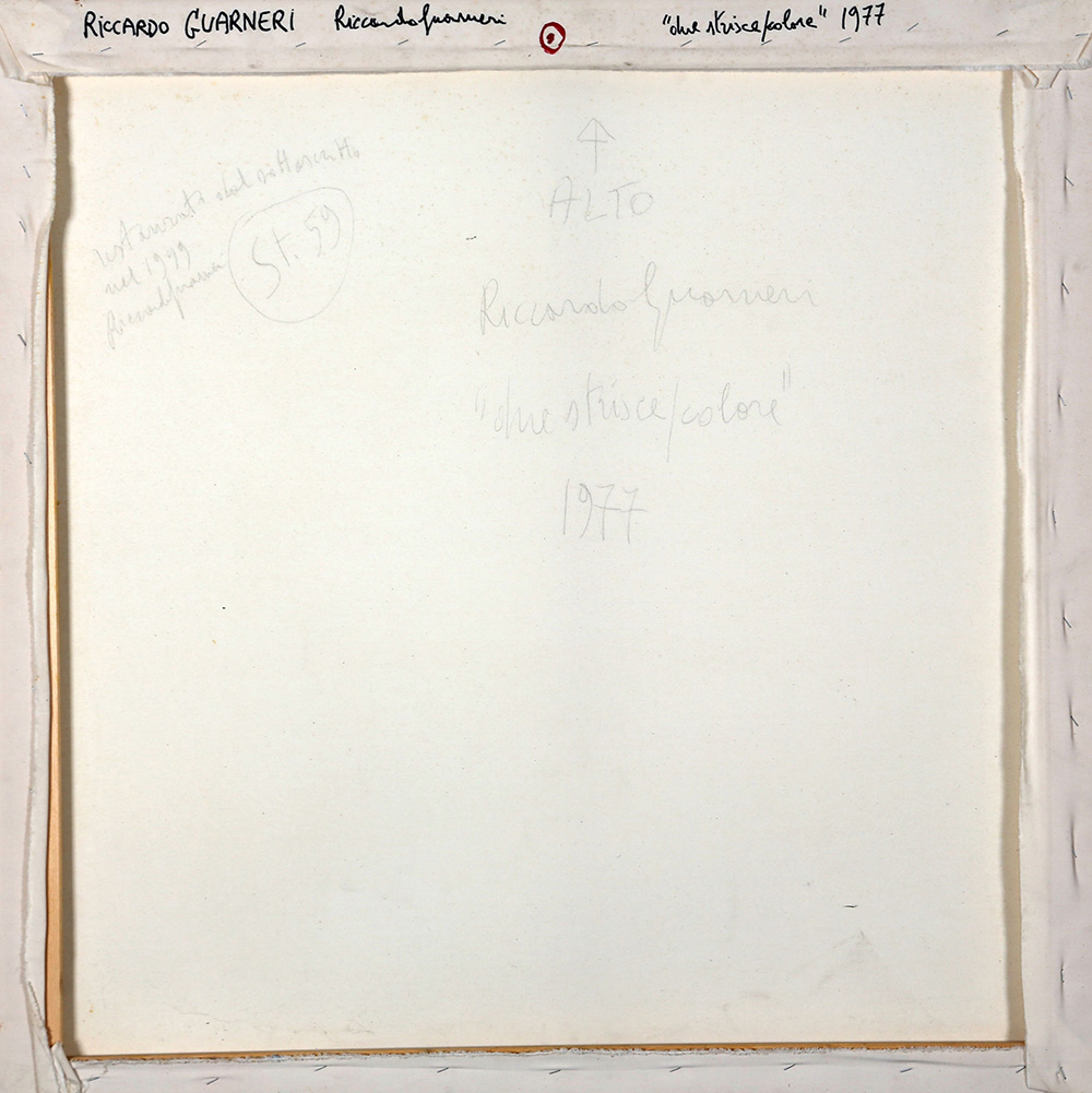 RICCARDO GUARNERI 1933 Due strisce/colore, 1977 Tecnica mista su tela, cm. 95 x 95 Firmato e datato sul retro Autentica dell’artista su fotografia Prov. Collezione Privata