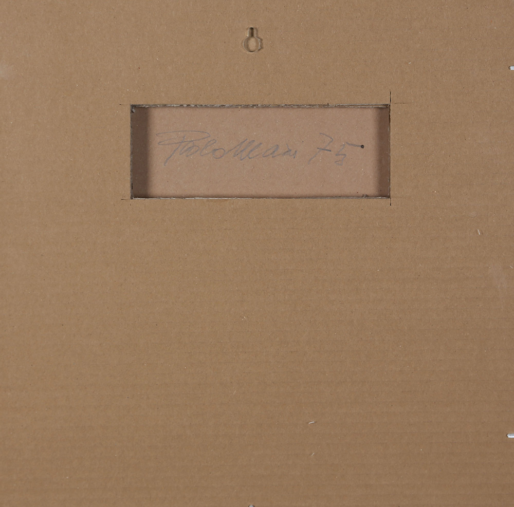 PAOLO MASI 1933 Senza titolo, 1975 Tecnica mista su cartone, cm. 40 x 40 Firmato e datato sul retro Autentica dell’artista su fotografia Prov. Collezione Privata
