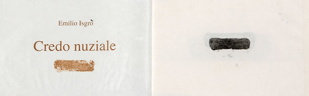 EMILIO ISGRO' 1937 Credo nuziale, 2010 Calcografia su carta shiohara Edizione pieghevole composta da 14 fogli cm. 19 x 29,5 (cad.) 70 esemplari con numeri arabi e 20 con numeri romani Copia n. XI / XX Prov. Collezione Privata
