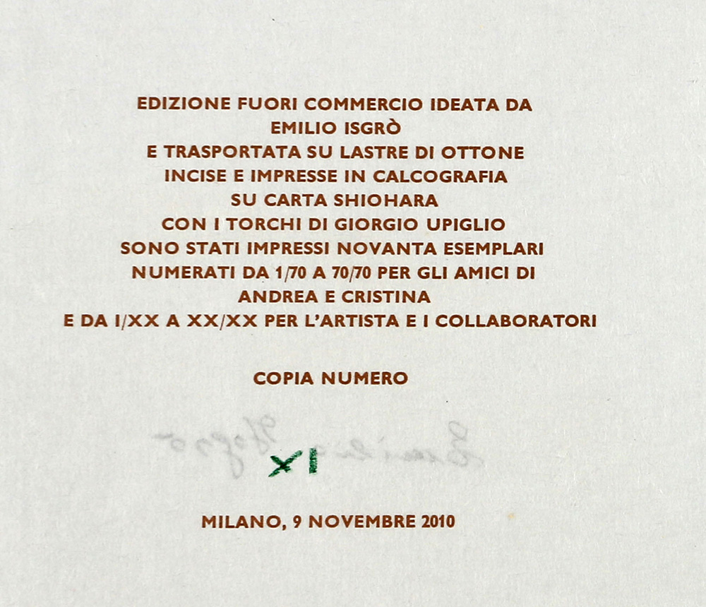 EMILIO ISGRO' 1937 Credo nuziale, 2010 Calcografia su carta shiohara Edizione...