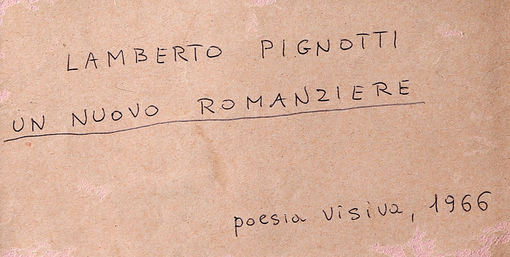 LAMBERTO PIGNOTTI 1926 Un nuovo romanziere, 1966 Collage su carta, cm. 15,5 x 21,5 Firmato e datato sul retro Autentica dell’artista su fotografia Prov. Collezione Privata