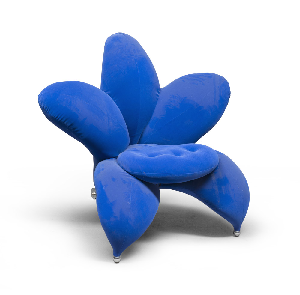 MASANORI UMEDA (Kanagawa 1941) Getsuen, 1990 Sedia a fiore di stoffa blu....