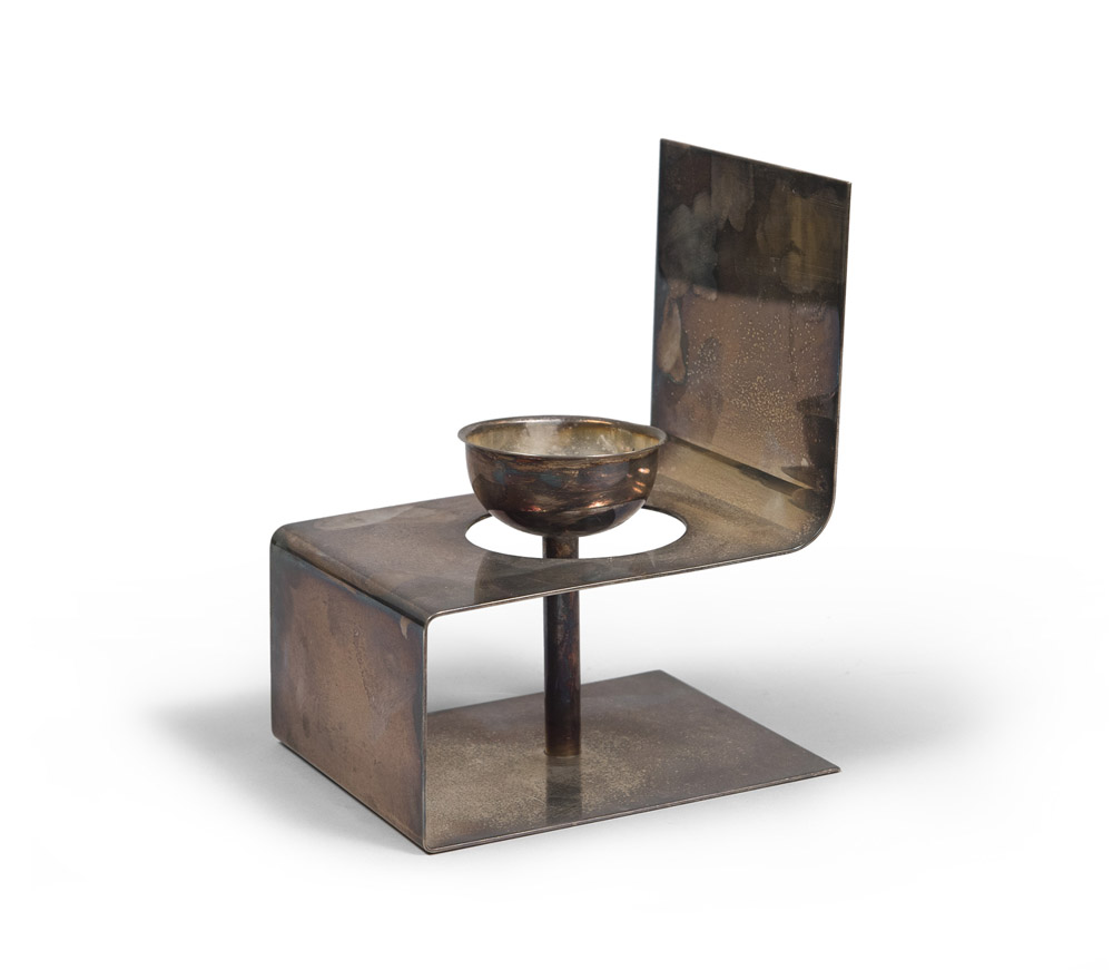 POSACENERE DA ESTERNO in metallo argentato. Misure cm. 17,5 x 15 x 12