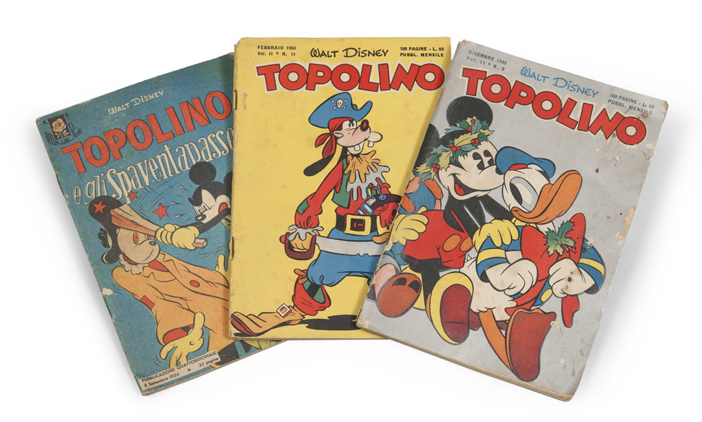 tre volumi di Topolino, Walt Disney Dicembre 1949, Febbraio 1950 e Settembre 1954 - Periodici Mondadori.