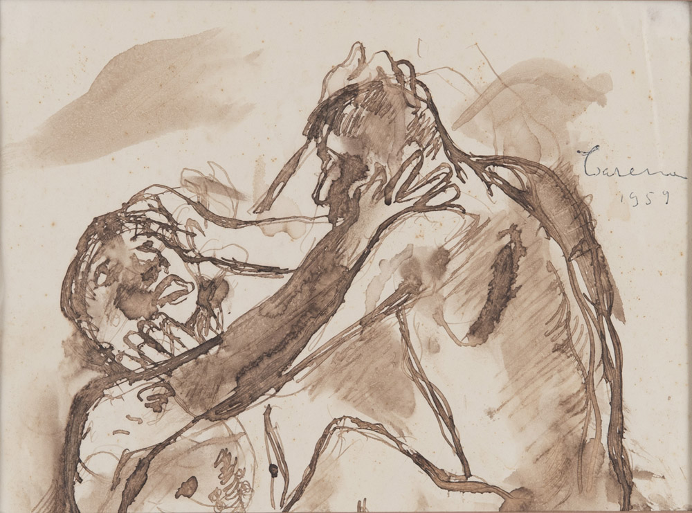 FELICE CARENA (Cumiana 1879 - Venezia 1966) Lotta, 1959 Acquarello su carta,...