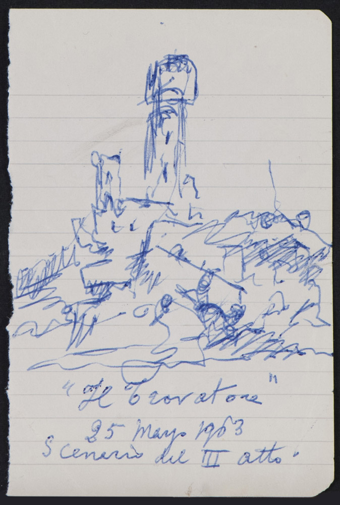 Scenario del III atto de 'Il Trovatore', 25 marzo 1963