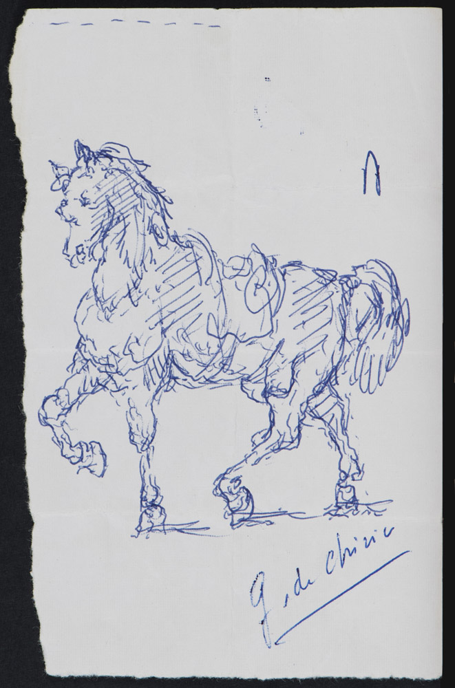 GIORGIO DE CHIRICO (Volos 1888 - Roma 1978) Cavallo, 1964 Penna biro blu su...